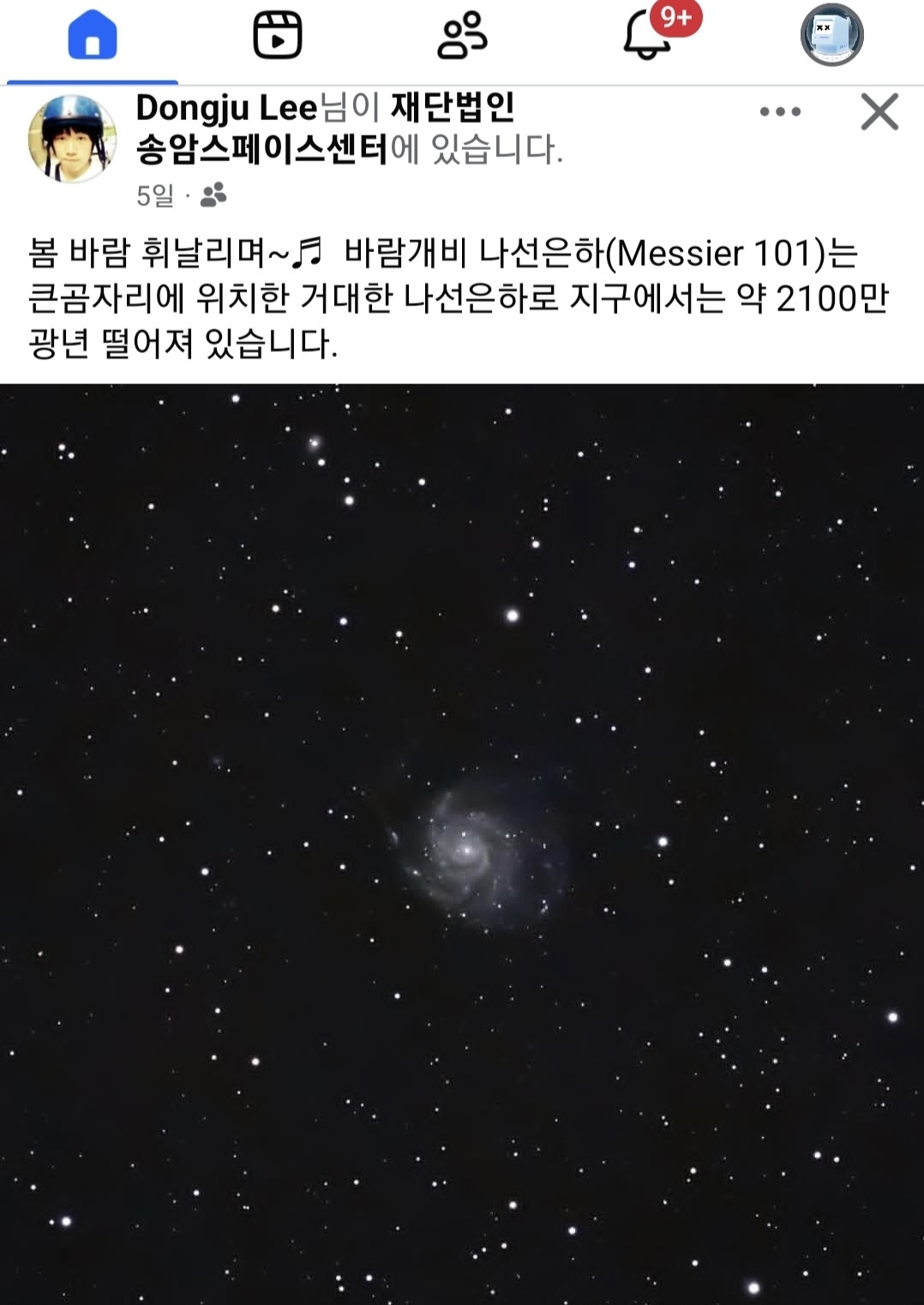 봄바람 휘날리는 바람개비 나선은하(Messier 101) 페이지 정보 작성자 관리자 댓글 댓글 0건 조회Hit 13회 작성일Date 26-04-22 15:25 본문 봄바람 휘날리는 바람개비 나선은하(Messier 101) 관련링크 https://www.facebook.com/100001974591213/posts/26351101364538991/?app=… 2회 연결 목록 댓글 0 댓글목록 등록된 댓글이 없습니다.