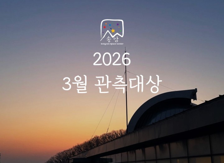 2026년 3월 천문관측대상[상세 보기] 천문대 관측대상 제목을 선택하시면 보실 수 있습니다. 페이지 정보 작성자 관리자 댓글 0건 조회 25,302회 작성일 23-12-29 18:55 목록으로 본문 목록 댓글 0 댓글목록 등록된 댓글이 없습니다.